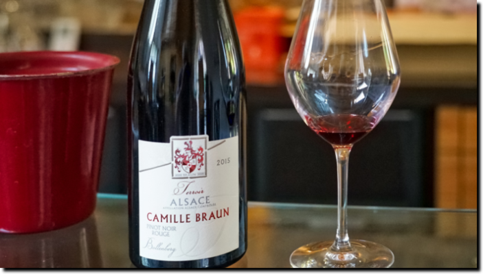 Vores hovedformål med at besøge Camille Braun var at smage de røde vine, hvoraf man laver 3. En Tradition, som ikke var specielt interessant, samt to fra marker på Bollenberg. Pinot Noir Cuvée Camille fra B' de Braun serien er den billigste af de to. Den lagres delvis på tank og delvist på eg. Det er en frisk og fyldig rødvin med bløde tanniner og masser frugt, lavet til at drikke indenfor 3-4 år efter høsten. Husets røde topvin hedder Rouge d'Alsace Bollenberg fra Terroirs serien. Denne vin lagres på egetræsfade og ligger på bundfaldet indtil den tappes på flaske. Det er på alle måder en stor rødvin med duft af sorte kirsebær og med velintegreret træ. Denne vin har da også fået 3 stjerner (=højeste) i Guide Hachette. En vin der egner sig til at lagre, ifølge vingården op til 15 år.