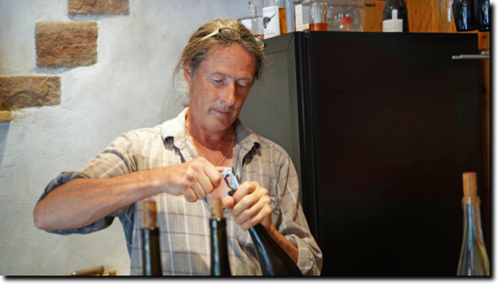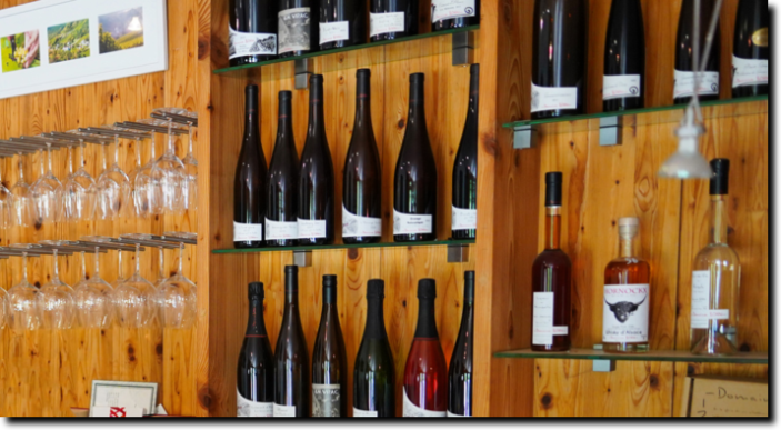 Vi smagte et pænt udvalg af naturvine, "L'Orange Gaulois", en orangevin lavet på Gewuztraminer og Riesling, som efter en lang maceration (udblødning dvs druerne trækker på drueskindet i flere måneder) tappes på flaske uden tilsætning af svovl og uden filtrering. Vinen er gæret helt tør, og når Bernard Bohn siger tør taler han om et sukkerindhold på under 0,1 g/l. Han giver ikke meget for den officielle grænse på tørre vine på 4,2 g/l. Og Pinot-Noir par NAthur, en vin lavet på druer fra gamle vinstokke fra to parceller, den ene skifer og den anden vulkansk, gæret på druernes naturlige gær uden tilsætning af svovl og hældt på flaske uden filtrering. Vi smagte selvfølgelig flere andre, f.eks. en Riesling der havde fået en maceration på 18 måneder, men det var de to vi valgte at købe med hjem. Vi faldt også for en mere normal Pinot-Noir "Les Roches Rouges", en rødvin lagret 14 måneder på Barrique som også blev købt. Husets Vin de France omfatter en Char'Bohnais (lavet på Chardonnay) og en naturvin lavet på Souvigner Gris, begge druer der ikke er godkendt til AOC Alsace. Vine fra Domaine Bohn kan købes i Danmark hos Sjov Saft og VinTro