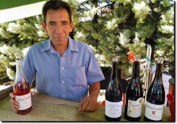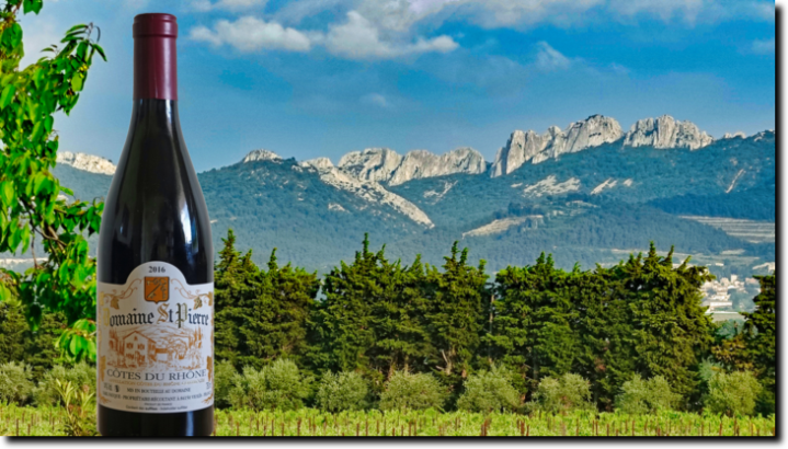 Selvom jeg er kørt forbi Domaine Saint Pierre mange gange har jeg endnu ikke besøgt denne vingård, der ligger lidt uden for Violès på den flade slette Plan de Dieu. Efter deres Côtes-du-Rhône tradition i lang tid har været den foretrukne dagligvin her i huset er det en fejl, der helt sikkert må rettes op på næste gang vi er i området. Ejendommen, som er en gammel familieejendom, drives i dag af brødrene Philippe og Jean-Francois Fauque, med Jean-Francois som ansvarlig vinmager. Han har en ønologisk uddannelse fra universitetet i Bordeaux. Vingården er en af de større, de råder over ca. 50 ha. fordelt med 4,5 ha i Vacqueyras, 3,5 ha i Plan de Dieu, 2 ha i Côtes-du-Rhône Villages, 25 ha Côtes-du-Rhône og 15 ha. Vin de Pays. Ca. en fjerdedel af markerne er beplantet med meget gamle vinstokke. Husets topvin er en Vacqueyras laves på 60% Grenache og 40% Syrah, med et udbytte på 35 hl/ha. Vinen lagres ca. et år på store egetræsfade, kaldet foudres. Det en udmærket vin, blød og kraftig, med duft af brombær, kirsebær, lakrid, kaffe og garrigue. Men den vin, der har gjort det største indtryk indtil nu, er den førnævnte Côtes-du-Rhône Tradition. Vinen laves på 60% Grenache, 15% Carignan og 25% Syrah og lagrer omkring 6 måneder på foudres. Det er ligeledes en blød og fyldig vin med duft af modne frugter, lakrids og et strøg af peber. Selvom den er blød har den også kraft og struktur. Et rigtig godt glas vin, men selvfølgelig især til en pris på omkring 75-80 kr, som den sælges til mange steder. Til den pris er den et fund. Vinene kan købes hos Felix Vine i Slangerup, hos Meny samt hos Stokholm Vinimport