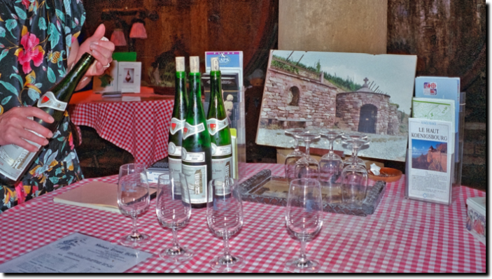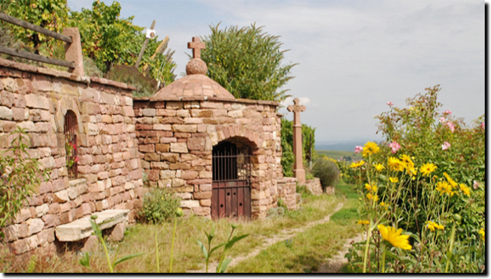 Det måtte jo komme! I lang tid var det en velbevaret hemmelighed, at her hos Burn i Gueberschwihr kunne man få nogle af de bedste vine i Alsace til yderst rimelige priser. Men efter år efter år at blive rost af Parker og mange andre, måtte priserne jo op! I mange år var vinene alt for billige i forhold til kvaliteten. Kvaliteten er stadig tårnhøj, men nu er priserne fulgt med, en Grand Cru "Goldert" Clos Saint Imer la Chapelle koster nu omkring €25. Vine fra Clos Saint Imer la Chapelle er med rette rost, men alle vine fra huset er værd at drikke! For eksempel blev husets standard Pinot Blanc af mange af mine gæster forvekslet med en Gewurztraminer! Domænet blev startet i 1934 af Ernest Burn, der lidt efter lidt købte små parceller i Grand Cru marken "Goldert". Vinmarkerne blev for det meste købt i Clos Saint Imer, den bedste og stejleste del af Goldert, og Ernest Burn genopbyggede med håndkraft selv de gamle mure omkring den muromkransede mark. Midt i markerne ligger et lille kapel indviet til Saint Imer, og husets bedste vin hedder "la Chapelle" efter dette kapel.