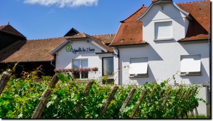 Vingården Buecher-Fix ligger i Wettolsheim og er igennem 6 generationer gået i arv fra far til søn. Men i 2009 fik vingården navneforandring til Vignoble des 2 Lunes, dette skete i forbindelse med at styringen af vingården blev overtaget af 7. generation. De to Lunes er søstrene Amélie og Cécile Buecher, to meget entusiastiske piger sidst i tyverne. Det med månerne kommer af, at vingården fra 2009 ikke kun dyrkes økologisk men også biodynamisk. Vingården er på 14 ha. spredt ud over flere kommuner og med vinstokke i to forskellige Grand Cru marker, Hengst i Wintzenheim og Hatschbourg i Voegtlinshoffen, samt på stejle skråninger i andre byer.