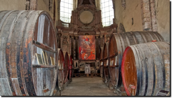 Gå i kirke og smag vin! I 2005 overtog kooperativet i Arbois det mindre kooperativ i den hyggelige by Poligny. Dette kooperativ havde hovedsæde i den tidligere kirke, Eglise du Couvent des Jacobins, midt i byen. Vinene laves nu ikke længere her, men på kooperativets hovedsæde Chateau Bethanie, men man har bevaret kirken som vinudsalgssted, komplet med de store vinfade, hvor bænkene til menigheden tidligere stod. Her kan man købe hele udvalget at Jura-vine, fra de almindelige røde og hvide over specialcuveerne til de mousserende og specialiterne, Vin Jaune og Vin de Paille, en sød vin lavet på tørrede druer. Et godt sted som introduktion til vinene fra Jura. Lidt derfra ligger forøvrigt museet for Comte-oste.